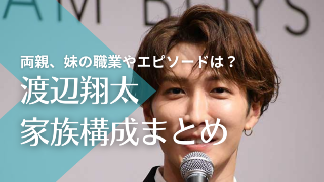 Snow Man 渡辺翔太の家族構成!両親、妹の職業やマザコンエピソードとは? 2024年1月10日 maruyama http://www.actagainstaids.com/wp-content/uploads/2022/08/はてなブログ はてブ Epicヘッダー Blog-500-×-500-px-2.png 芸能人のファミリーってどんな人?